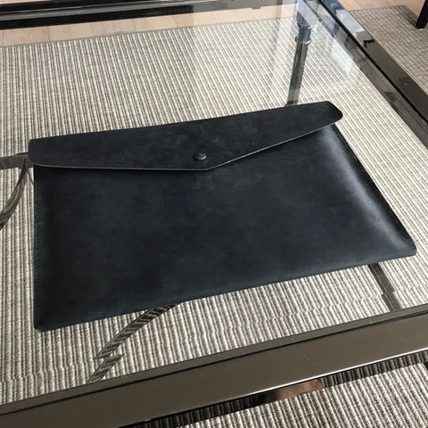 Je porte depuis déjà plusieurs années une paire de bottes italiennes en cuir que mon père avait acheté lorsqu’il était jeune. La longévité du cuir est une propriété remarquable. Alors que je suis loin de posséder les connaissances de la fine maroquinerie italienne, j’apprécie agrémenter mes créations de ce matériau. Il m’arrive aussi de me lancer des défis en fabriquant des objets complets en cuir, comme des pochettes à ordinateur ou des portefeuilles. Fidèle à ma philosophie, ces objets sont tous sourcés localement et faits 100% sur-mesure.